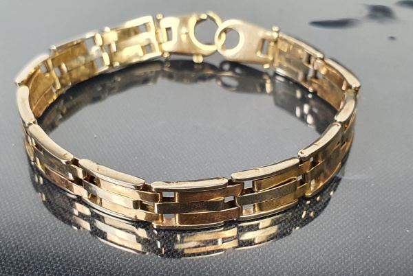 • Pulseira em ouro . Medida aberto: 18 cm. Peso: 18,5g