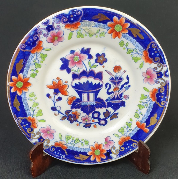 • Prato em porcelana na cor branca, esmaltado com flores, detalhes dourados e azul. Medindo: 22 cm. Apresenta degastes na douração.