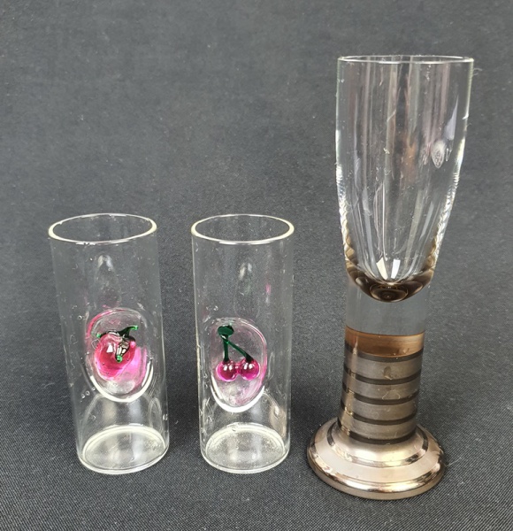 • Três  copos para licor. Medindo: 8,6 cm e 14 cm.