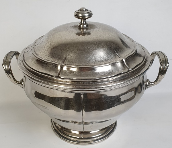 • Wolff - Sopeira em metal espessurado à prata. Medindo:30 x 34 cm. Apresenta desgaste.