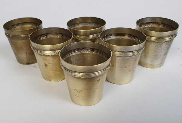 • Seis copos em metal . Medindo: 4 x 4 cm