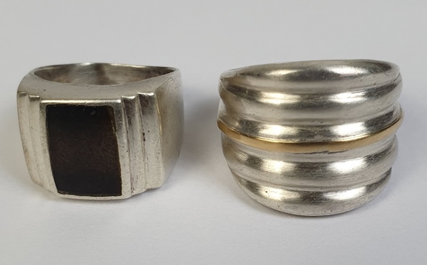 • Dois anéis em prata de lei. Aros 17 e 15.