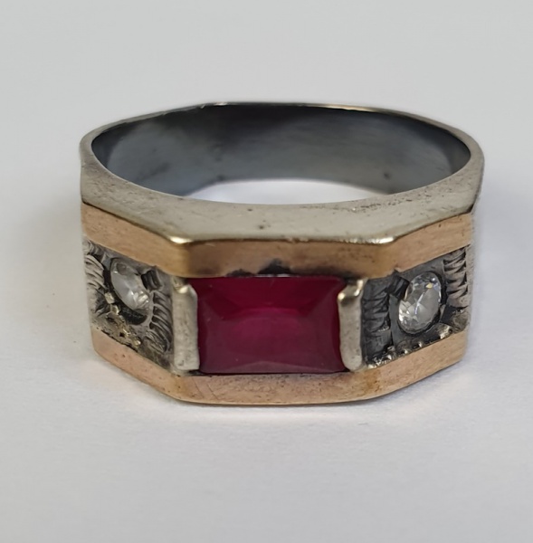 • Anel em prata de lei, com pedra rosa. Aro 20.