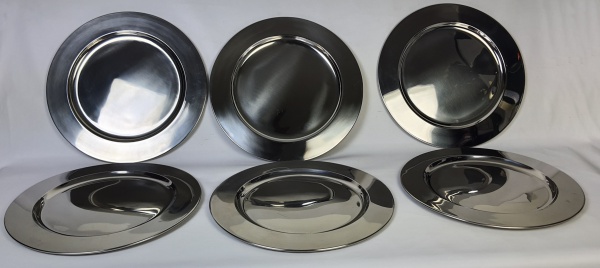 • Seis souplats, em metal prateado. Sem uso. Medindo: 33 cm.