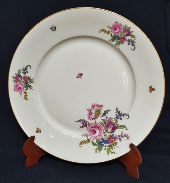 • Bavaria - Rosenthal, Ivory - Medalhão/ prato para bolo em porcelana alemã na cor marfim com decoração floral e fio de ouro. Marcado. Medindo: 4 x 32,5 cm