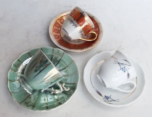 • Três xícaras para café de coleção, das marcas  Windsor, Monte Alegre e Real.