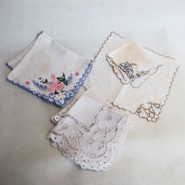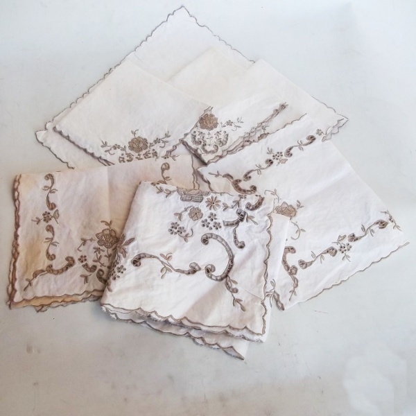 • Oito paninhos de linho e quatro bordados.