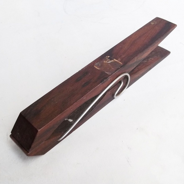 • Grande grampo em jacaranda  para segurar papeis. Década de 70. Medindo: 19 cm