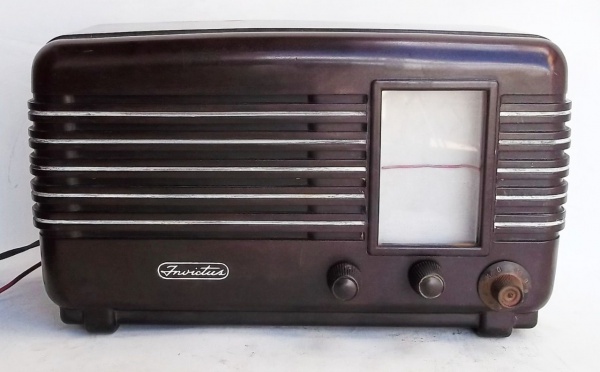 • Antigo rádio invictos, caixa em baquelite, valvulado, sem funcionamento. Medindo: 17 x 30 x 12 cm.