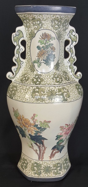 • Grande vaso / ânfora em porcelana oriental com rica decoração floral. Medindo: 61 cm.