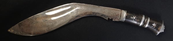 • Cutelaria - Faca Kukri/kukre de caça / guerra africana, em aço, gravado Índia. Medindo: 40 cm. Apresenta pontos de oxidação.