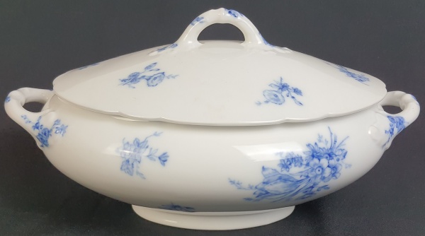 • Sopeira em porcelana na cor branca com flores esmaltadas na cor azul. Medindo: 20 x 34 x 20,5 cm