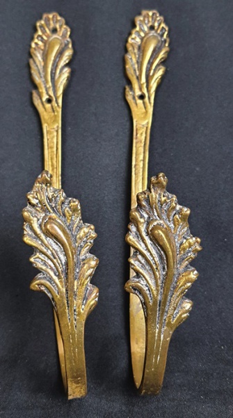 •  Dois suportes em metal dourado, ricamente cinzelado. Medindo: 25,5 cm