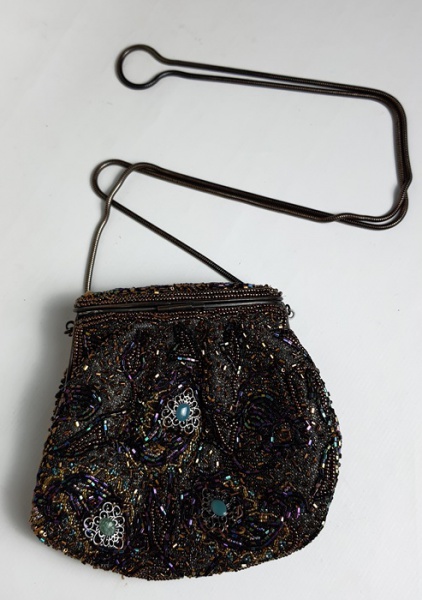• Bolsa anos 40 , com detalhes em missangas. 14 x 15 cm