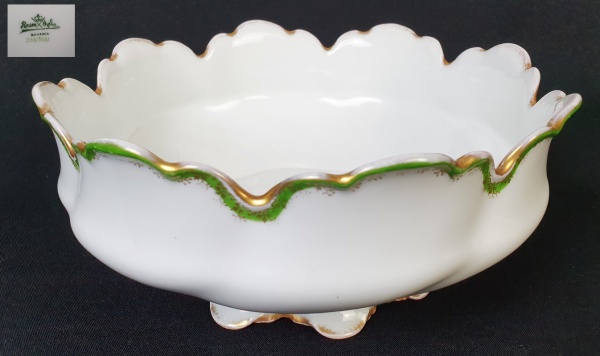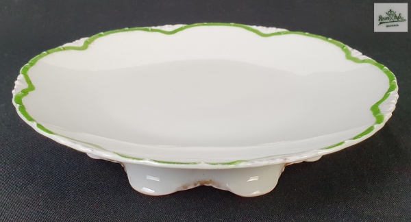 • Rosenthal, Bavaria - Fruteira em porcelana alemã na cor branca, com detalhes filetada a ouro, listra verde e bordas recortadas. Medindo: 4 x 23 cm