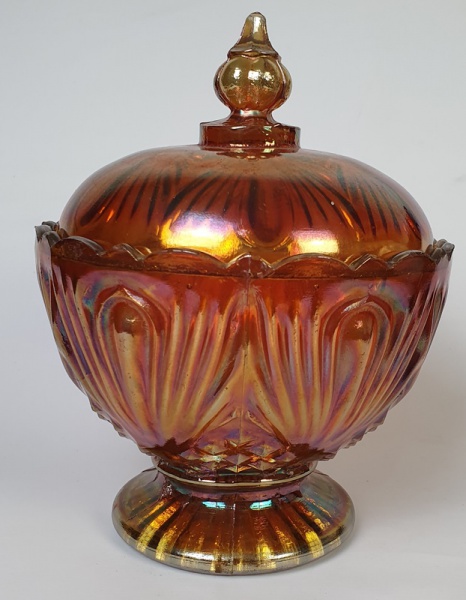 • ESBERARD - Compoteira em vidro Esberard, incolor decoração dita Bola Fogo. Medindo: 22 x 16 cm. Bicados na parte interna da tampa, que não compromete o uso e a beleza da peça.