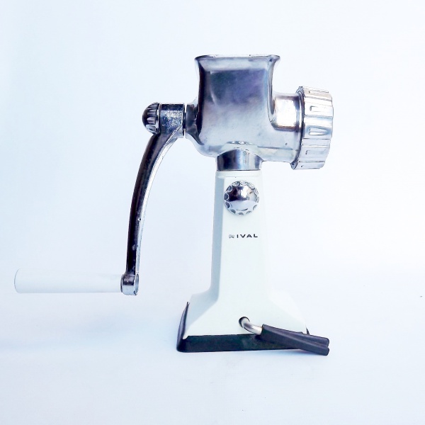 • Moedor de carne americano, da família Rival, que inclui picador de gelo, espremedor, fatiador etc. Funcionando Med 22c23cm