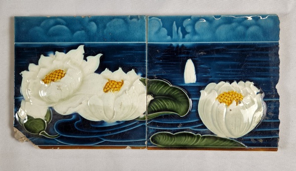 • INGLATERRA (CIRCA DE 1900) - Dois azulejos art nouveau, esmaltados. Medindo: 15 x 15 cm. No estado.