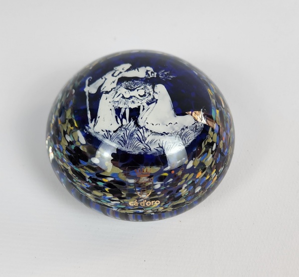 • CÁ D’ORO, Seguso - Peso de papel em vidro de Murano. Com representação católica. Medindo: 6 x 9,5 cm.