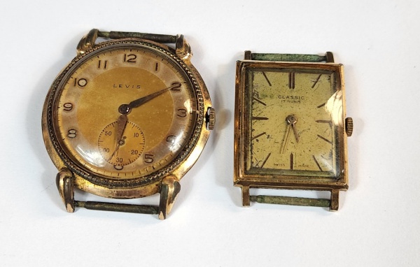 • Dois relógios de pulso, sem pulseira, sendo um da marca Classic e outro Levis. No estado. Sem garantias de funcionamento.