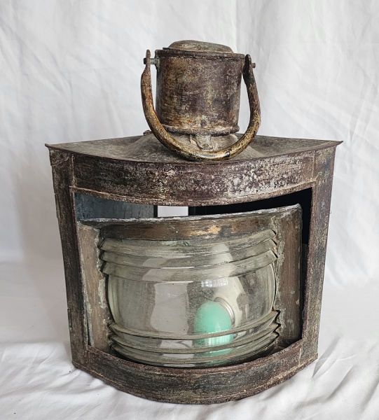 • Antiga lanterna de navio em latão e vidro. Medida; 40 x 36 x 29 cm. Altura com alça; 50 cm,