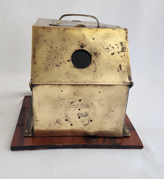 • Bitacula de mão sem bússulas caixa em metal dourado.  início do século XX, keiki seisakusho ltd trade mark amacasaki japan Vidro bisotado. II GUERRA MUNDIAL. Medindo: 24 x 25 x 22 cm.