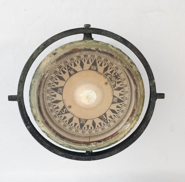• Antiga bússola nautica em metal. Osaka/ Japan, No estado. Medindo: 9,5 x 21 cm.