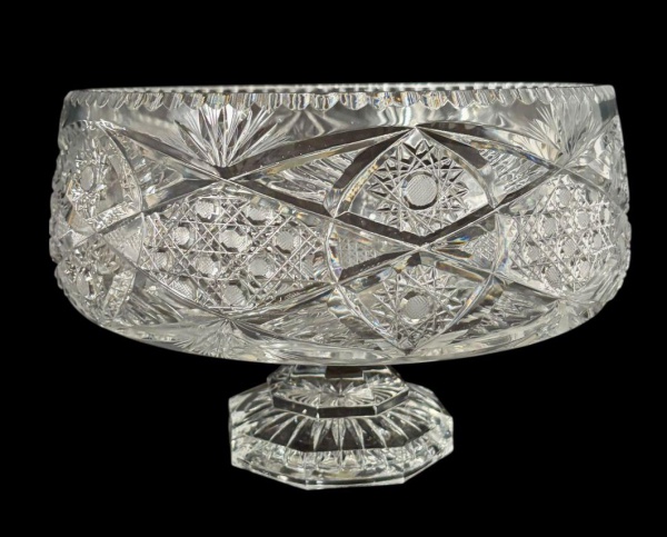 • Fruteira / Centro de mesa em cristal com rica lapidação geométricos; medindo: 31 x 19 cm