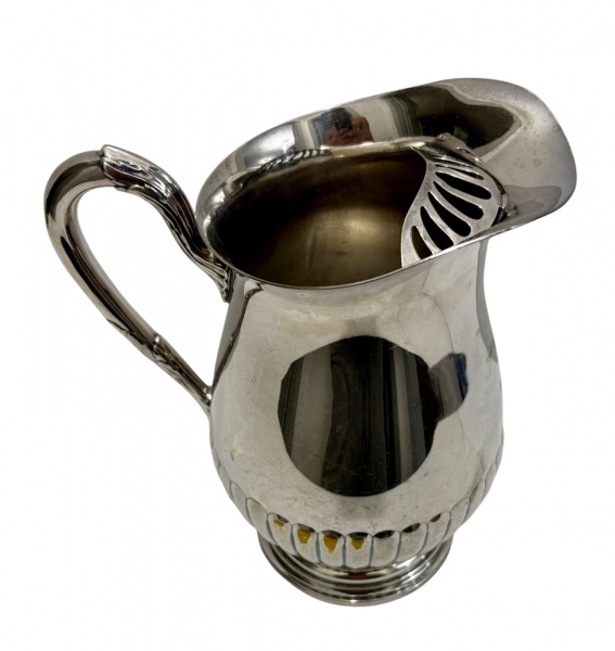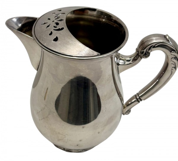 • Jarra em metal espessurado à prata; medindo: 20,5 x 12,5 x 19 cm,