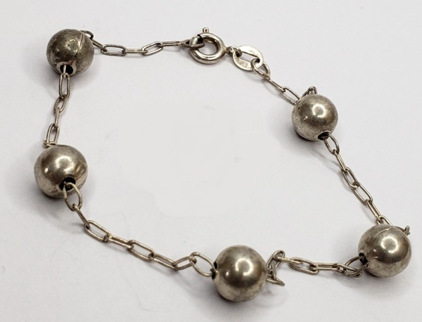 • Vintage Luxo Jóias, Coleção, Pulseira, em Prata de Lei NL925, com Contas Esféricas, medindo 18,5cm. Peso total 4,38gr
