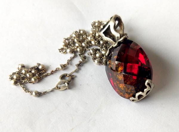 • Vintage Luxo Jóias, Coleção, Cordão com Âmbar Mel em Prata de Lei 925, Contas Esféricas, medindo 49cm, e Pingente com cristal Âmbar/ mel lapidado, medindo 39mm. Peso total 21,07gr.