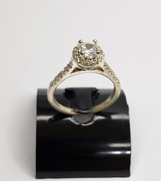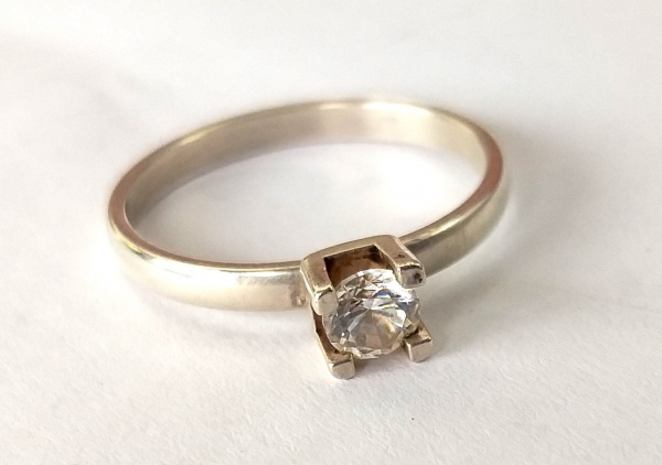 • Vintage Luxo Jóias, Anel Solitário em Prata de Lei com Cristal Brilhante, Aro 19. Peso total 1,86gr